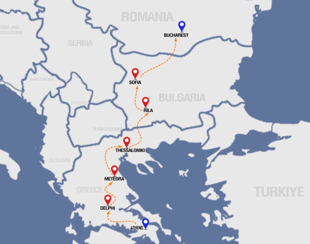 Explore Delphi and Meteora, renowned for their breathtaking monasteries and archaeological marvels. Continue to Sofia and Thessaloniki, where you can immerse yourself in their extensive histories.